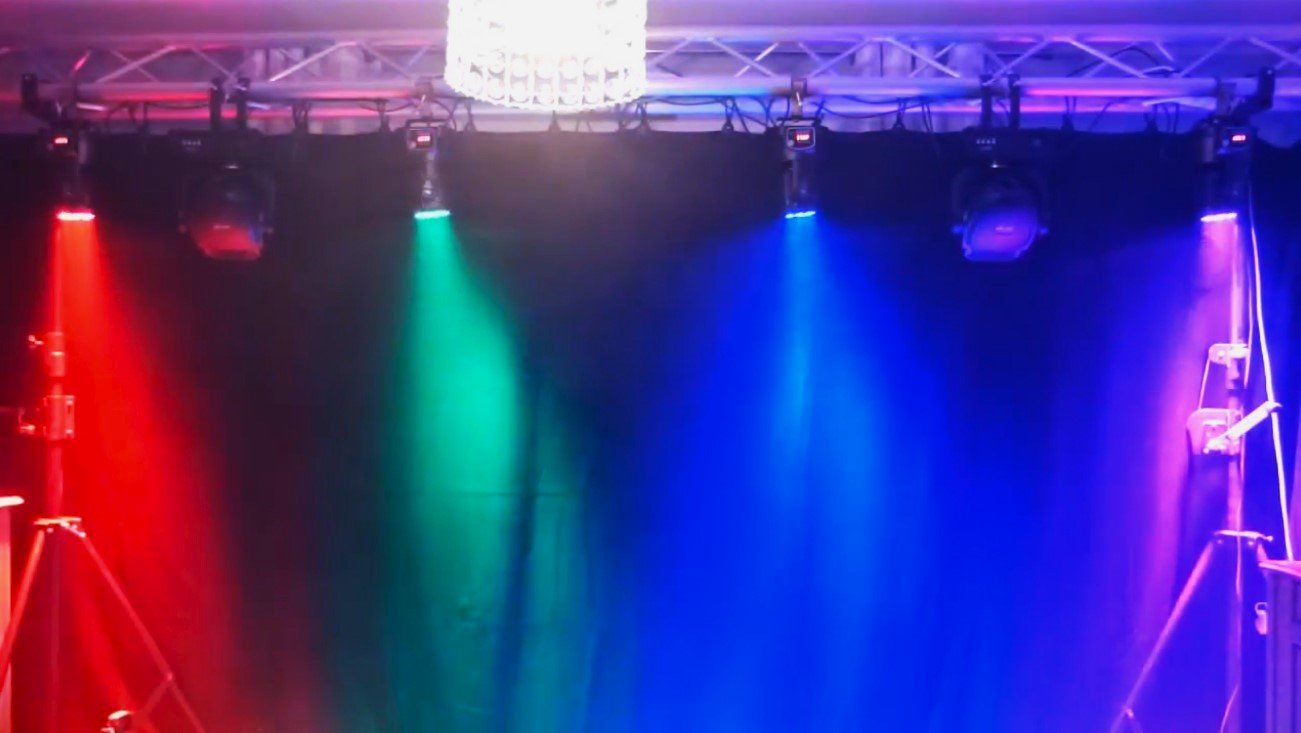 - 2 × spots PAR con 3 × 1 W rojo, 3 × 1 W verde, 3 × 1 W azul y 3 × 1 W blanco.
